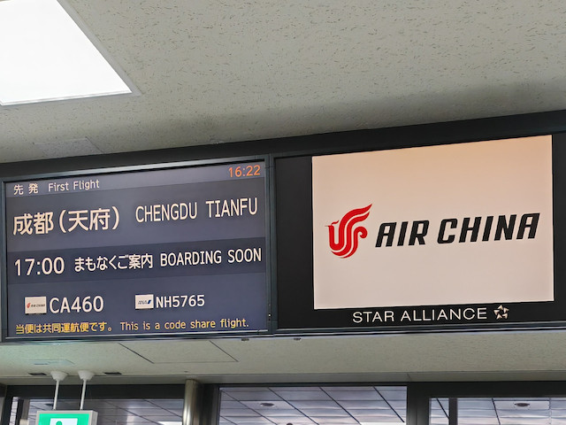 日本の航空会社の直行便はなく、Air China(中国国際航空)を使います。Air Chinaなのに航空会社のコードはCA。そして、台湾にChina Airline(中華航空)というのがあって、大変紛らわしいです。